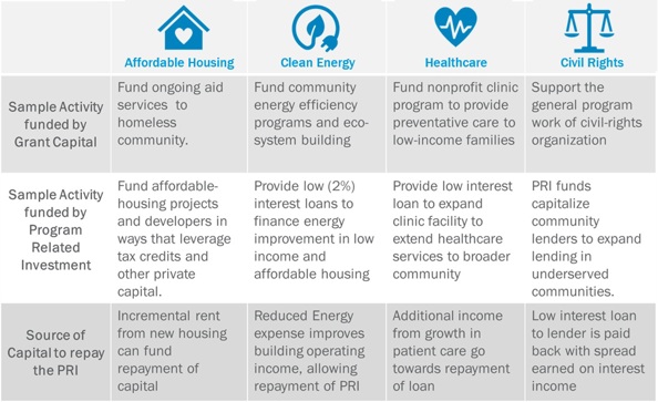 Advance Your Mission in Ways Beyond What is Possible with Just Grants. Grants mostly serve to fund the ongoing activity of a nonprofit whose services align with the mission of a grant-making foundation. PRIs, on the other hand, provide low-cost capital to fund projects with larger capital needs and provide a means for the underlying nonprofit to unlock other sources of capital. The ability to tailor a PRI’s structure to meet the funding requirement of the target project gives the foundation the ability to make an impact in a broad spectrum of circumstances: