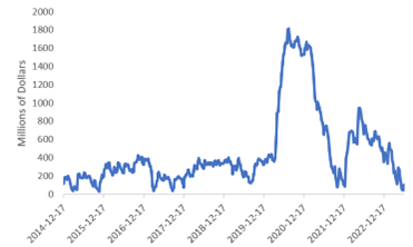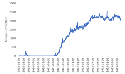 The TGA bottomed during the week of June 7th with a balance of approximately $44 billion. Estimates predict that the Treasury will need to finance an additional $733 billion from July through September to meet 2023 fiscal year obligations. [2]