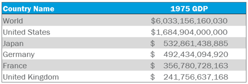In October 1976, the U.S. formally removed all ties between the dollar and gold, marking the end of the Bretton Woods system. While its collapse began with the introduction of the two-tier gold system in 1968 and the suspension of gold convertibility in 1971, the framework it created for international trade and economic cooperation persisted. The U.S. economy remained the largest and most influential globally, with a GDP of $1.68 trillion in 1975 (see Figure 3), ensuring the continued dominance of the dollar in international trade. Additionally, the U.S. dollar’s role in oil transactions, often referred to as the “petrodollar system,” further cemented its global supremacy.